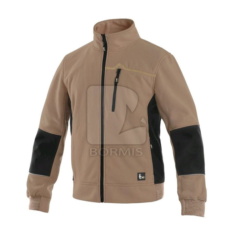 Pánska mikina. Pás a rukávy ukončené pružnou manžetou. Zosilnené patenty na lakťoch, náprsné vrecko, vrecká na zips, reflexné doplnky.