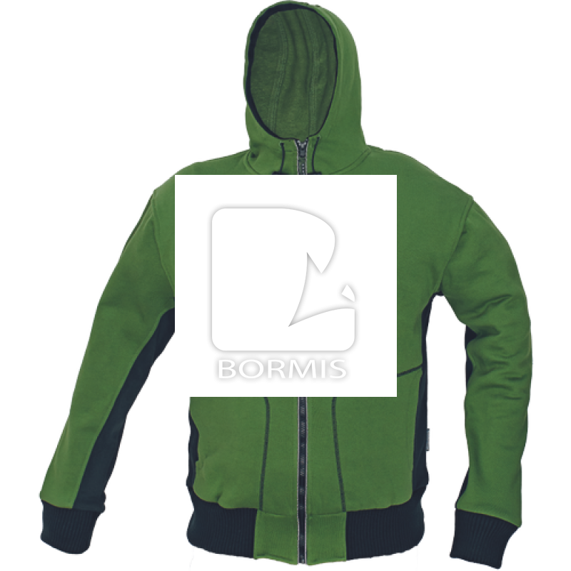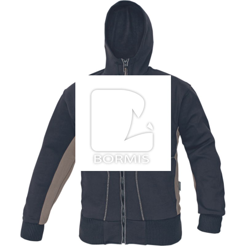 Mikina s kapucňou so sťahovaním na šnúrku spodný lem a manžetové rukávy sú z extra širokého pleteného úpletu s prímesou elastanu. Materiál: 80 % bavlna, 300 g/m², 20 % polyester