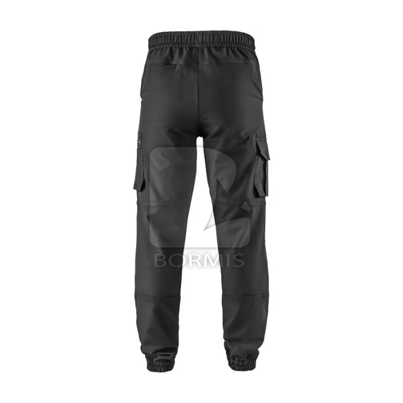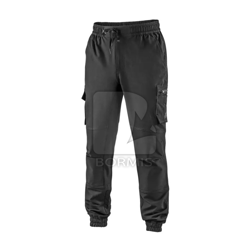 Pánske nohavice vhodné do práce aj na voľný čas. S gumou v páse s možnosťou stiahnutia na šnúrku. Spodok nohavíc do gumy. 2 predné vrecká. Zadné vrecko a stehenné bočné vrecká na zips. Pohodlne tvarované a zosilnené kolená. vyrobené z 4-WAY stretchového materiálu, ktorý sa dobre prispôsobuje vďaka rozťahovaniu do všetkých strán.