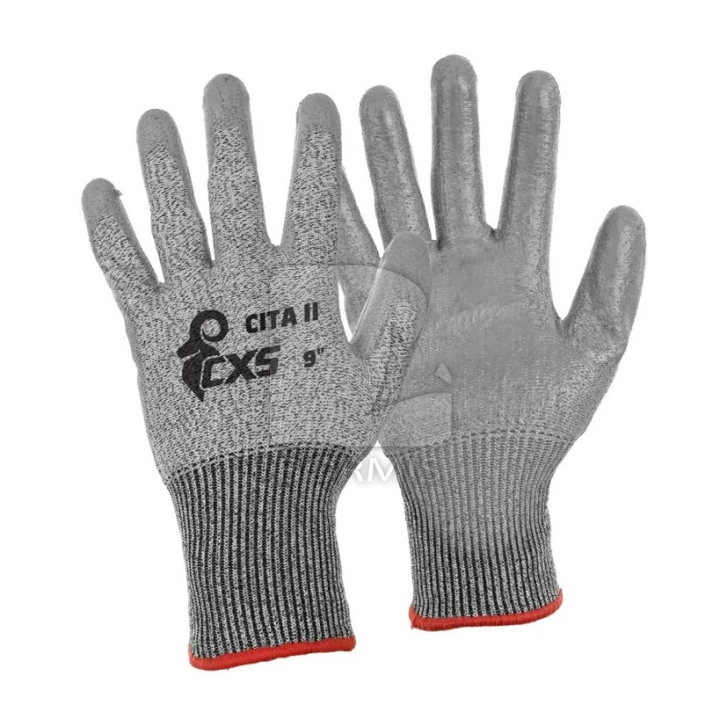 Pletené bezšvové rukavice s odolnosťou proti prerezaniu D, dlaň a prsty potiahnuté polyuretánom. Vynikajúca odolnosť proti oderu a porezaniu. Odporúčané použitie: logistika, skladovanie, manipulácia s tabuľovým sklom a predmetmi s ostrými hranami, manipulácia s plechom, rezanie suchých, lakovaných alebo pozinkovaných dielov, rezanie malých, suchých alebo ľahko naolejovaných dielov, údržba. Norma: EN ISO 21420, EN 388/4X43D