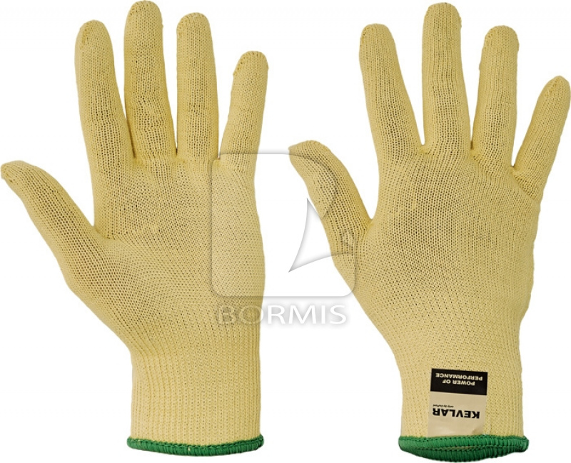 Pletené, bezšvové, stredne silné kevlarové rukavice.