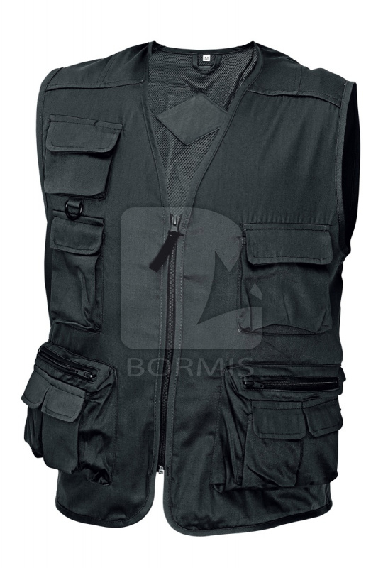 Ľahká vesta s praktickými vreckami. Vnútorná sieťovina z materiálu polyester Mesh.