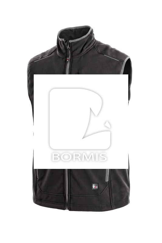 Softshellová vesta, TPU membrána, odolnosť materiálu proti prieniku vody 3000 mm mimo oblasť švov, paropriepustnosť 800 g / m2 / 24 hod, reflexné doplnky.