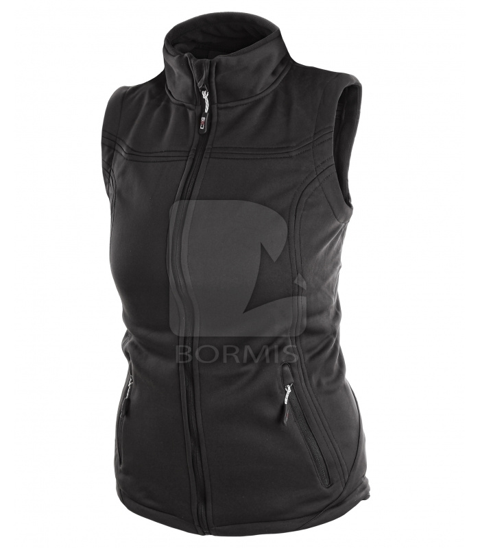 Ľahká dámska softshellová celozapínacia vesta, sťahovanie v dolnej časti.