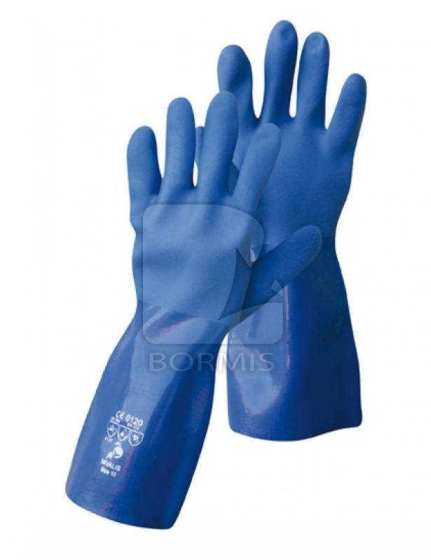 Rukavice z PVC odolné voči chemikáliám s bavlnenou podšívkou a špeciálnou povrchovou úpravou. Rukavice vynikajú ergonómiou a úchopovými vlastnosťami, ľahko sa nasadzujú. V celkovej dĺžke 35 cm.
