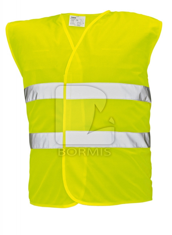 Výstražná vesta s vysokou viditeľnosťou podľa normy EN 471. Reflexné pruhy 2x šírka 5 cm. Zapínanie na suchý zips.
