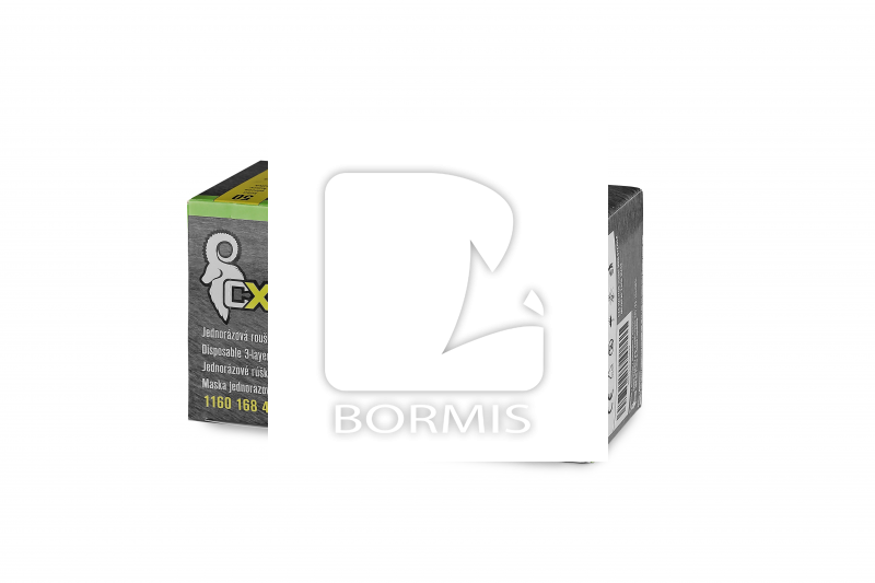 Jednorazové rúško trojvrstvové. Netkaná textília, integrovaný nosný pásik, uchytenie gumičkou za uši.