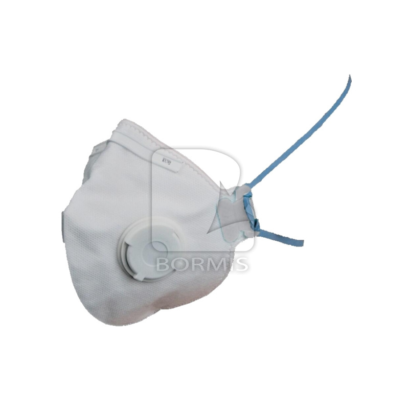 Filtračná polomaska FFP2. Skladacia s výdychovým ventilom, ochrana proti tuhým a kvapalným časticiam v koncentrácii do 12 x PEL, tvarovateľná nosná výstuha, vnútorná penová výstuha, upínanie na temene hlavy, neobsahuje latex, nejde používať opakovane, účinnosť proti koronavírusom.