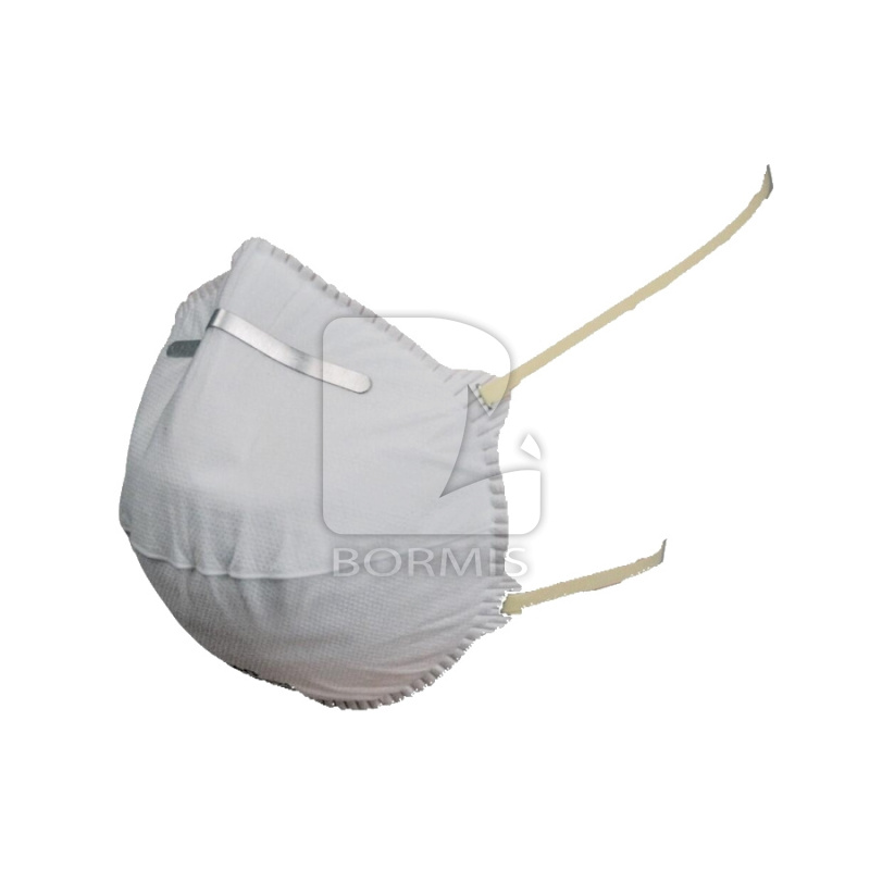 Filtračná polomaska FFP1. Tvarovaná, ochrana proti tuhým a kvapalným časticiam v koncentrácii do 4 x PEL, tvarovateľná nosná výstuha, vnútorná penová výstuha, upínanie na temene hlavy, neobsahuje latex, nejde používať opakovane.