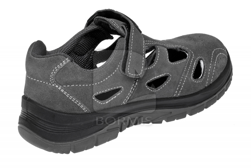Bezpečnostné sandále s oceľovou špicou doplnené o oceľovú planžetu zabraňujúcu riziku prepichnutia obuvi zo strany podošvy.