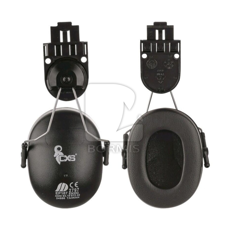 Nacvakávacie mušlové chrániče sluchu. Univerzálne úchyty na prilbu. Možnosť použiť s prilbou CXS STAVBÁR.