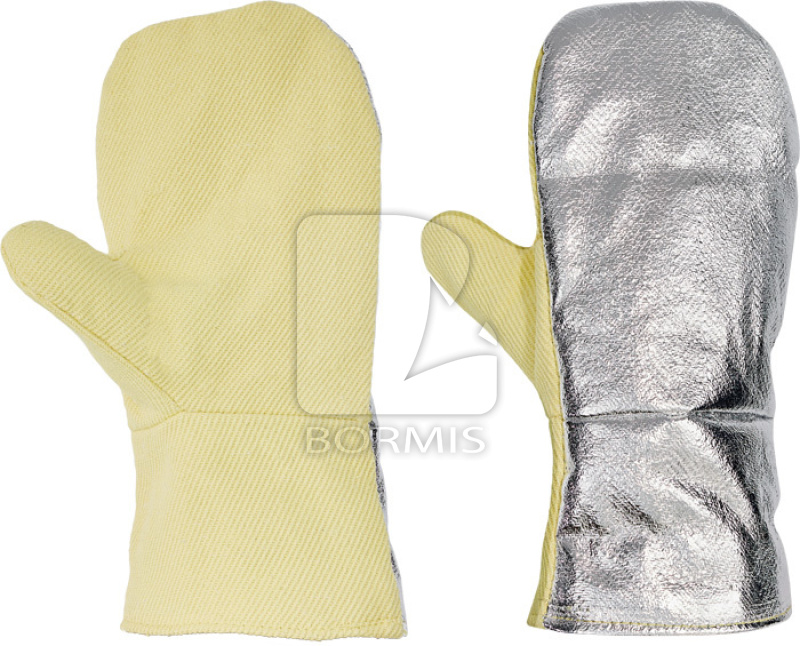Palcové trojvrstvové rukavice z materiálu aramid (320 g/m2), s pohliníkovaným chrbtom, ochranou pred sálavým teplom, taveninou a kontaktným teplom do 350 °C, krátkodobo i do 500 °C.