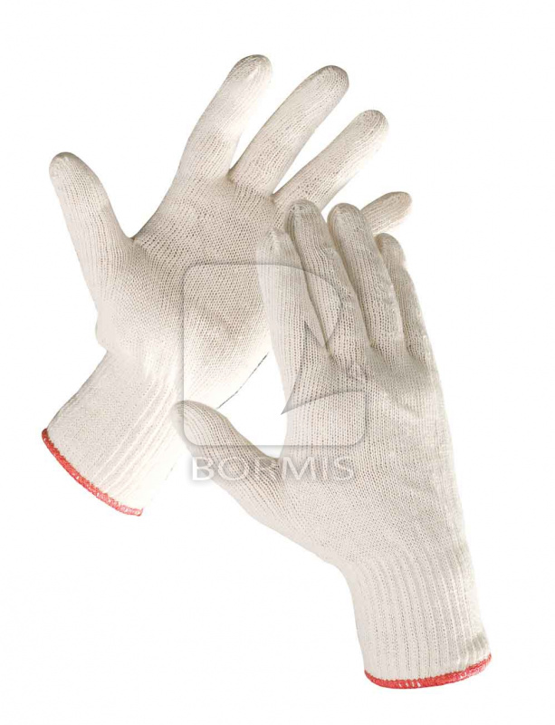 Pletené, bezšvové, bavlnené rukavice s pružnou manžetou.