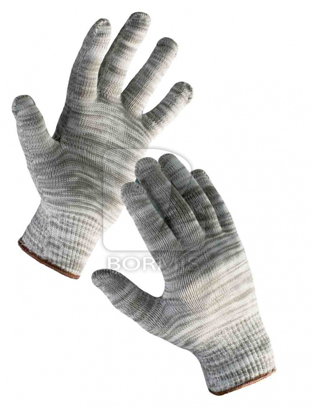Pletené, bezšvové rukavice zo zmesi nylon/bavlna.