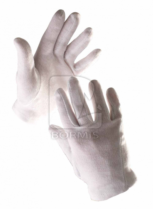 Rukavice šité z jemného jednoduchého nylonového úpletu podľa strihu "fourchette", bez manžety.