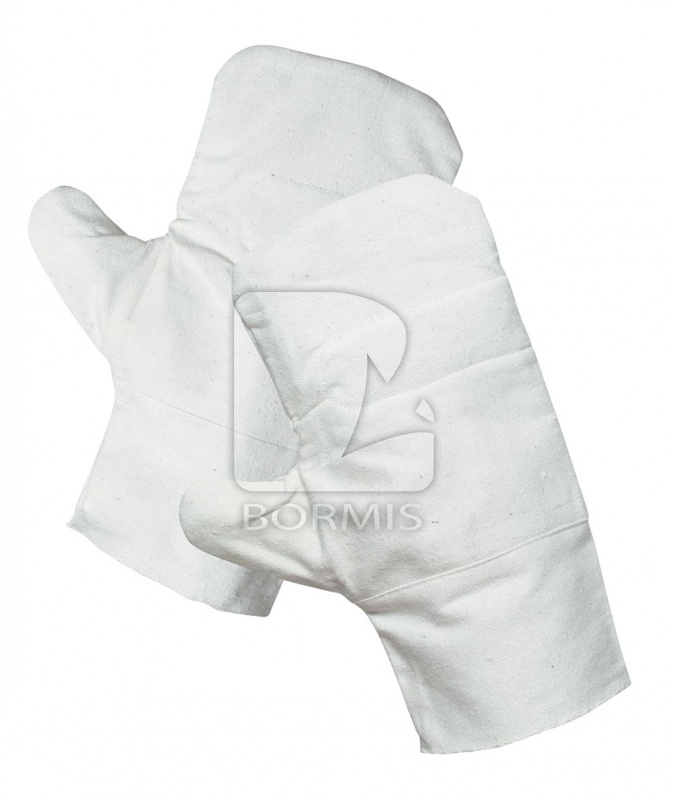 Palcové obojstranné rukavice šité z hrubého bavlneného plátna, s trojitou vrstvou prešívanou v dlani, v celkovej dĺžke 26 cm.Rukavice sú atestované pre priami styk so suchými potravinami.