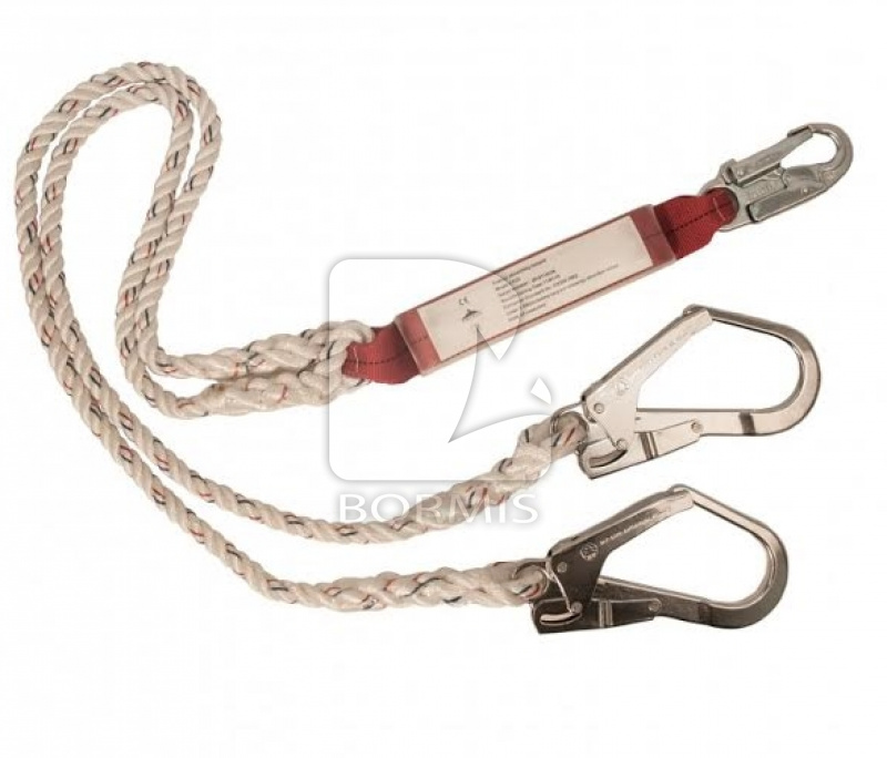 Ypsilonka zo 180 cm dlhého pružného lana v nylonovom púzdre pre pohlcovanie energie s rozdvojeným lanom, dvomi lešenárskymi hákmi a jednou karabínou. Zaťaženie max. 10kN. EN354.