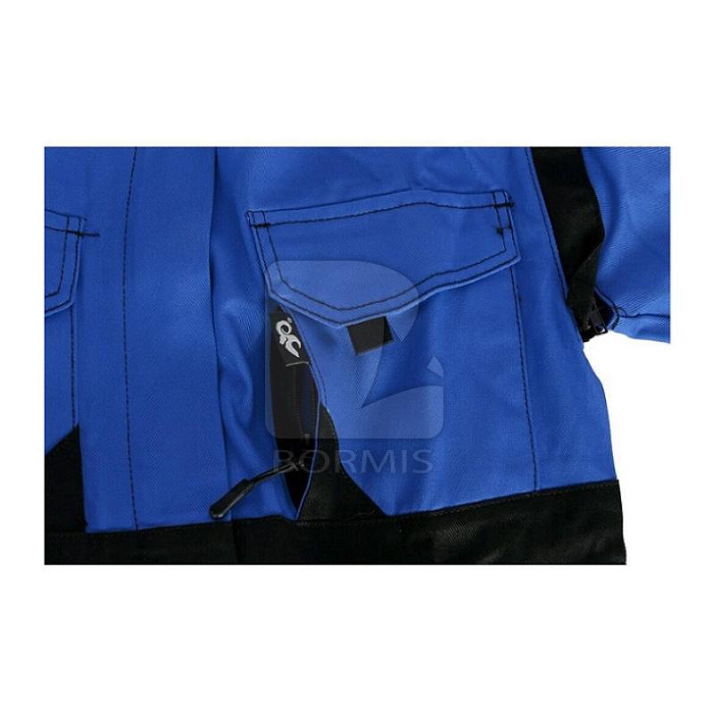 Pánska montérková bunda, zimná, zateplená fleecom, odopínateľné rukávy do manžety, kryté zapínanie na zips a suché zipsy, vrecko na mobil, jednoduché bočné vrecká, pás na bokoch do gumy. Reflexné doplnky.