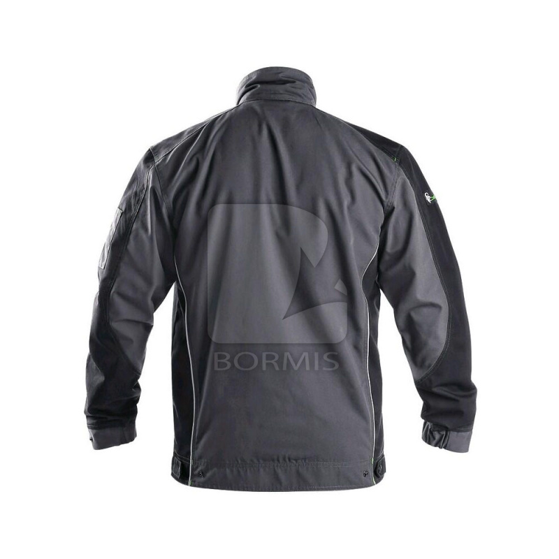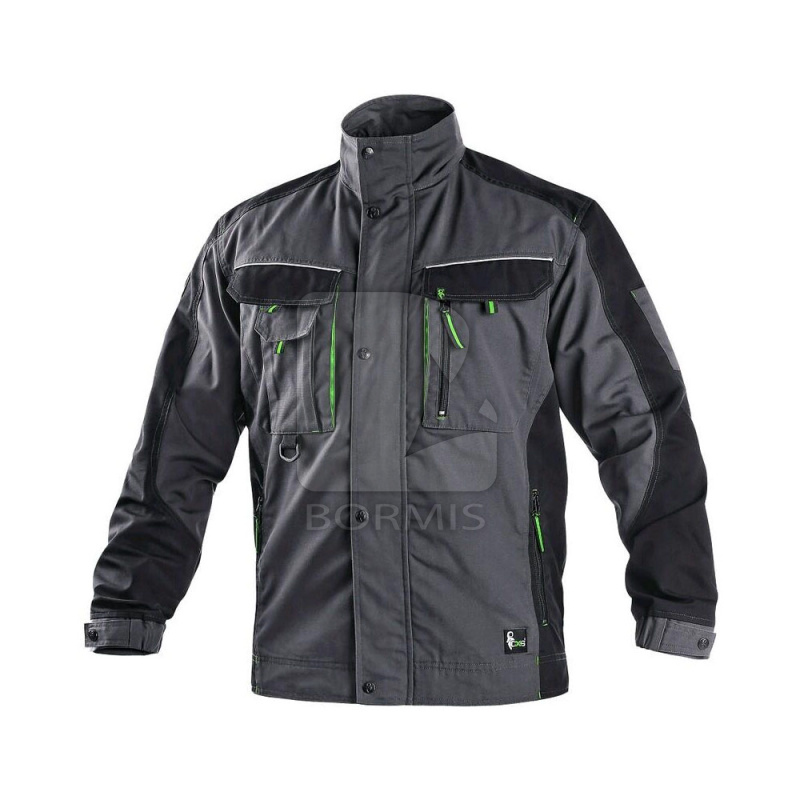 Pánska montérková bunda, zimná, zateplená fleecom, ramená vystužené 600D polyesterom, rukávy s nastaviteľnou manžetou, kryté zapínanie na zips a cvoky, multifunkčné náprsné vrecká, bočné vrecká na zips, regulovateľný pás, reflexné doplnky.