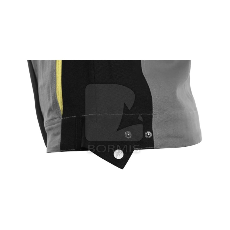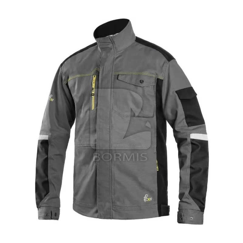 Pánska pracovná blúzka zateplená fleecom, elastická tkanina umožňujúca voľný pohyb, ramená vystužené polyesterom 600D, rukávy s nastaviteľnou manžetou, vrecko s klopou na ľavom rukáve, kryté zapínanie na zips a gombík, náprsné vrecká - gombík a zips, bočné vrecká na zips, nastaviteľný pás, vetranie na chrbte, reflexné doplnky.