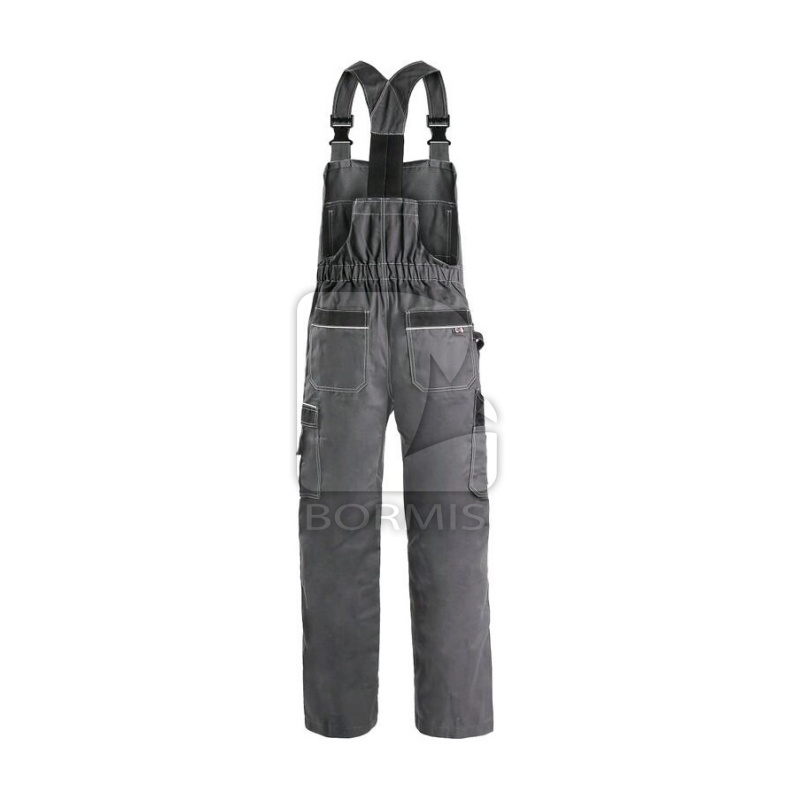 Pánske zimné nohavice s náprsenkou, zdvojené kolená 600D polyesterom s možnosťou vloženia nákolenníkov, traky s gumou vzadu, pás s pútkami na opasok, vzadu do gumy, predné vrecká s pútkami na náradie, náprsenka s vreckami a rozopínaním v strede, zateplené flanelom, reflexné doplnky.