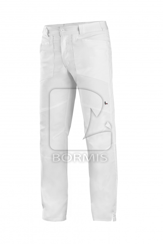 Pánske nohavice, čiastočne elastický pas s pútkami na opasok, 2 nakladané predné vrecká, pravé zadné lištové vrecko, ergonomický strih kolien. Doporučené použitie: súkromné ordinácie, kliniky a veľké zdravotnícke zariadenia, záchranné a zdravotné
