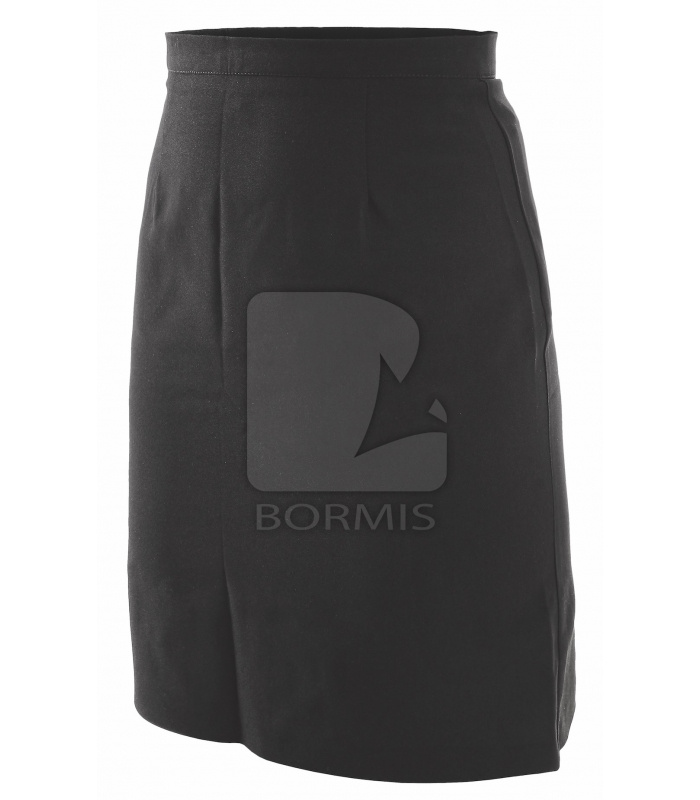 Sukňa pre servírky, pevný pás, v zadnej časti zapínanie na gombík a zips. V zadnej časti rozparok.
