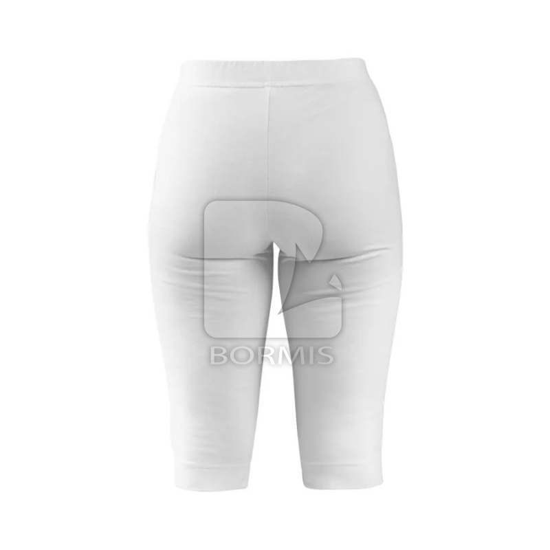 Dámske 3/4 legíny, pás do gumy, nohavice na spodku s malým rozparkom na boku, 2 predné vrecká, finálna silikónová úprava. Vhodné na voľný čas aj do práce.