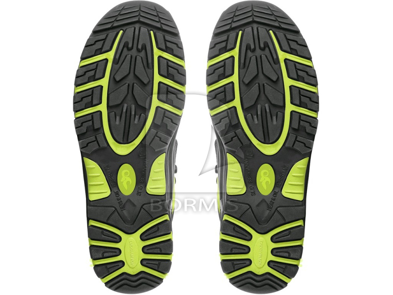 Materiál: zvršok z 1,6 - 1,8 mm hydrofóbnej štiepenkovej nubukovej kože, vonkajšia TPU ochrana paty, bez kovových častí, podšívka z priedušnej oderu odolnej textílie, podošva: PU/guma, olejuvzdorná, antistatická, protišmyková, odolná proti prepichnutiu.