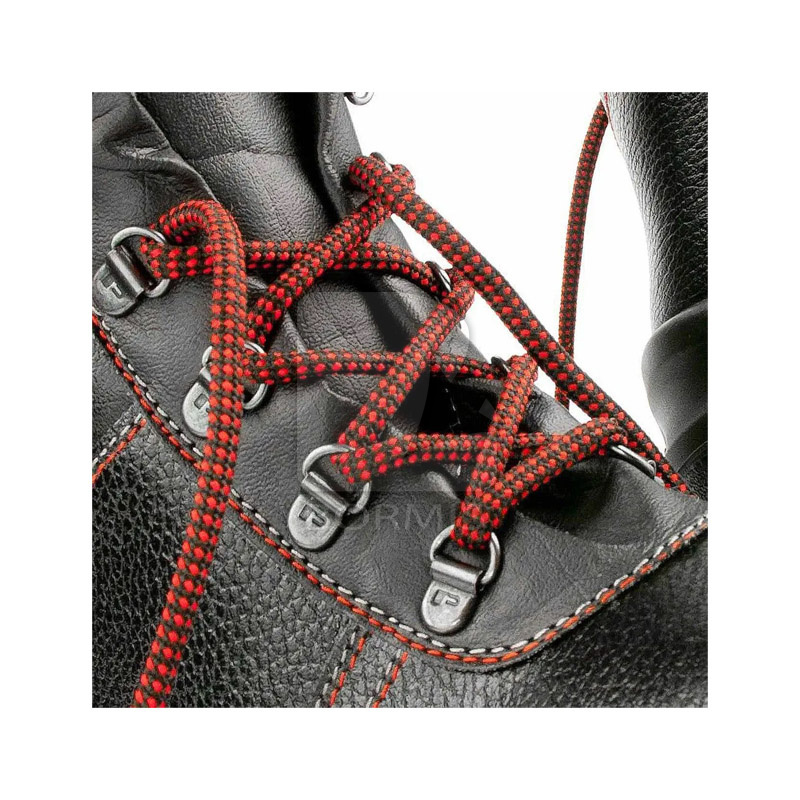 Bezpečnostná zateplená vysoká obuv s oceľovou špicou a oceľovou stielkou proti prepichu, antistatickou a protišmykovou podošvou rezistentnou voči pohonným hmotám, absorpciou energie v päte a vodeodolným zvrškom z priedušnej kože. Norma: EN ISO 20345