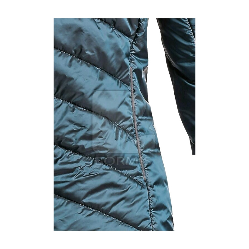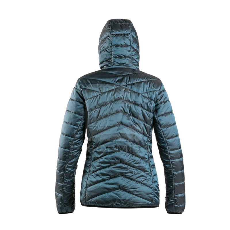 Dámska zateplená bunda s kapucňou a reflexnými doplnkami. Bunda má zapínanie na zips, rukávy a spodný lem do gumičky, 2 bočné vrecká na zips s reflexnými doplnkami a reflexné výpustky vzadu na bokoch.