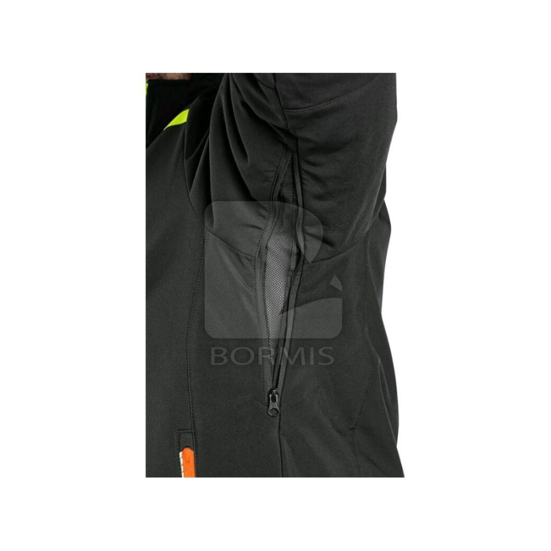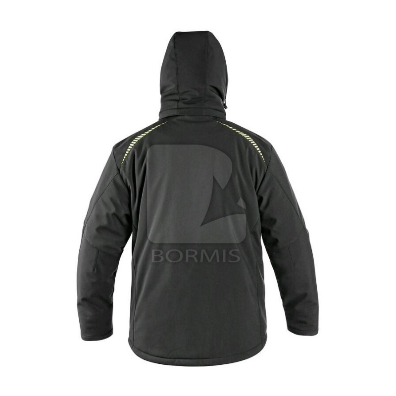 Pánska zateplená softshellová bunda s odnímateľnou kapucňou, odolná proti vode a vetru, zapínanie na zips, vetranie v podpazuší, náprsné vrecká na zips, v pravom vrecku odnímateľné puzdro na ID kartu, bočné vrecká na zips, vnútorné vrecká, vnútorné manžety v rukávoch, sťahovanie v dolnom okraji, reflexné doplnky, TPU membrána, vnútorný otvor na zips pre aplikáciu výšivky. Odolnosť materiálu proti prieniku vody 8 000 mm mimo oblasť švov, paropriepustnosť 3 000 g/m2/24h. Norma: EN ISO 13688