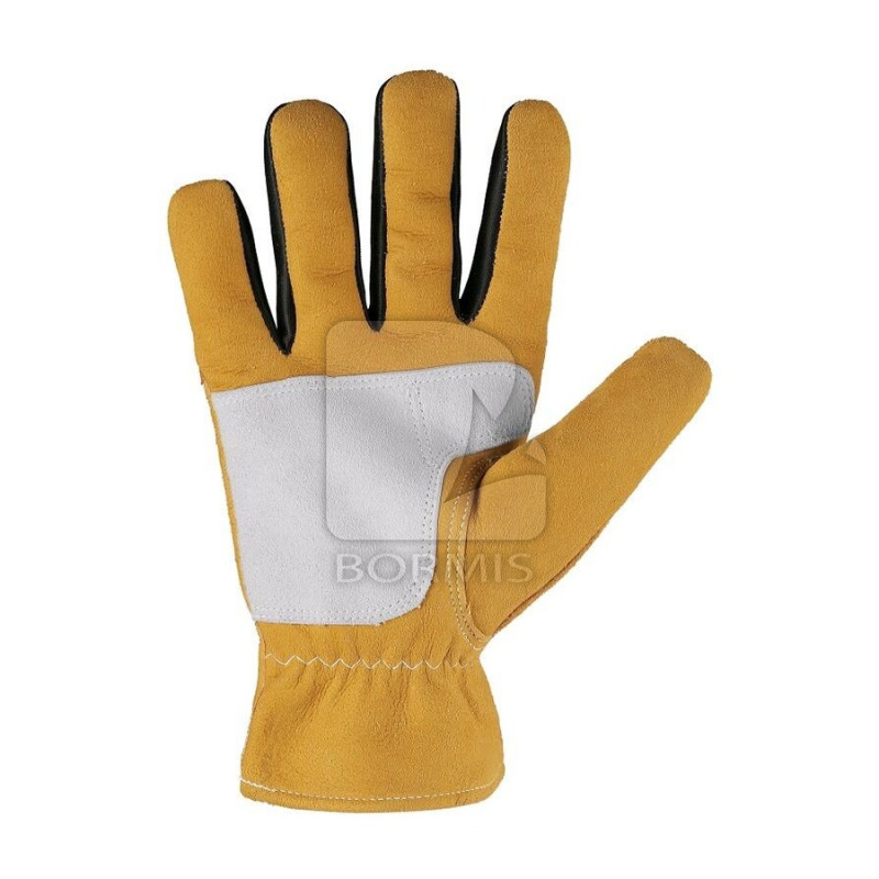 Celokožené zimné rukavice s plyšovou podšívkou a gumičkou v zápästí. Balené s blistrom. Doporučené použitie: stavebníctvo, logistika, práca v suchom a chladnom prostredí, doprava, strojárenstvo, poľnohospodárstvo.