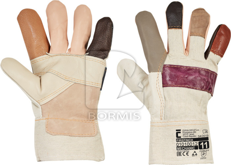 Rukavice z rôznofarebnej lícovej nábytkárskej hovädziny v dlani s teplou podšívkou a bavlnenou tkaninou na chrbte a manžete. Materiál: lícová nábytkárska koža Norma: EN 420:2003+A1:2009, EN 388:2016 2223X