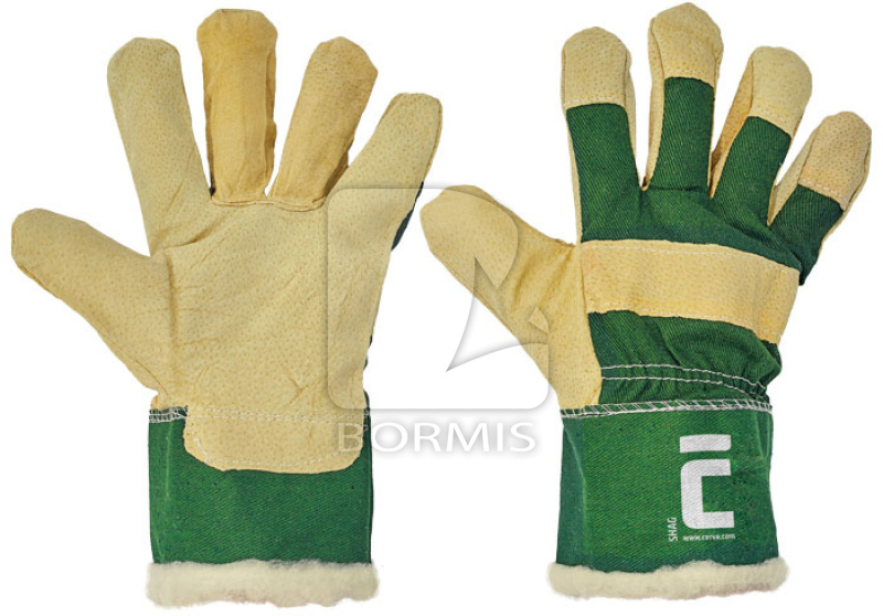 Zateplené rukavice z bravčovej štiepenky v dlani, bavlnenej tkaniny na chrbte a manžeta, teplá podšívka. Modré - vel. 9 , Biele - vel. 10, Červené - vel. 11, Zelené - vel. 12 Norma: EN ISO 21420, EN 388 (2121X)