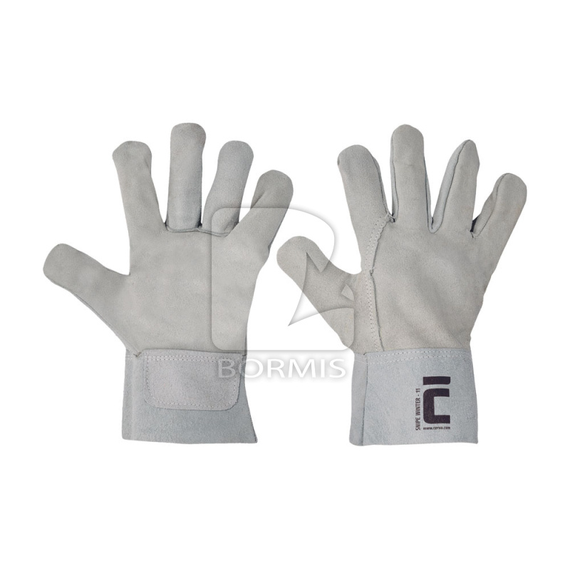 Celokožené zateplené rukavice z hovädzej štiepenky, so 7 cm širokou manžetou zosilnenou dlaňou a palcom.