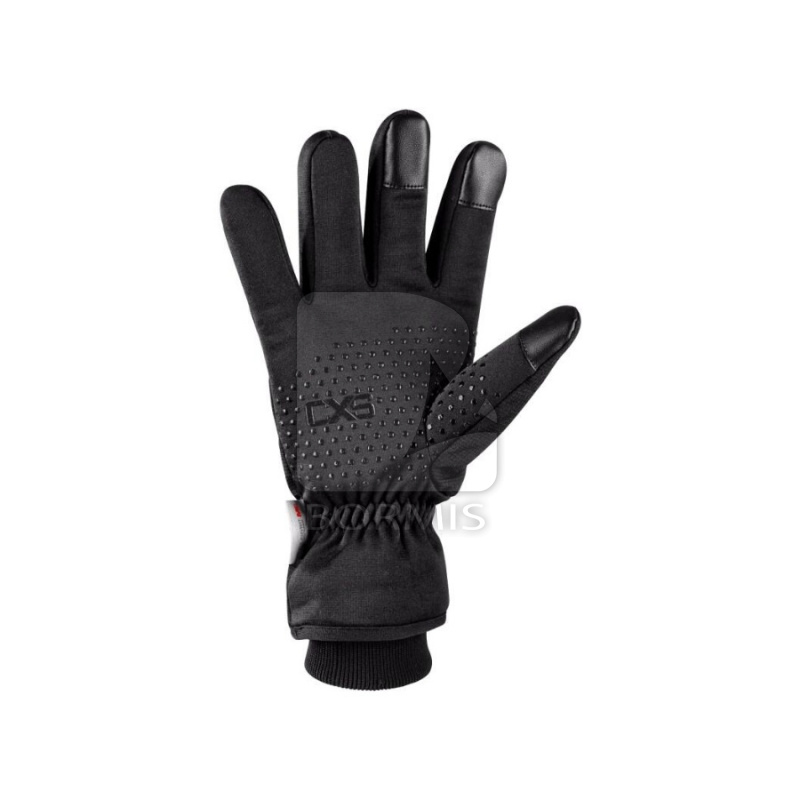 Zimné rukavice UNISEX s fleecovou izoláciou, s podšívkou 3M Thinsulate a nepremokavou úpravou. Protišmykové silikónové aplikácie v oblasti dlane a palca. Na palci, ukazováku a prostredníku materiál na prácu s dotykovými podložkami. Voľná manžeta s gumičkou na zápästí. Plastová spona na zapínanie. Rukavice nie sú certifikované ako pracovné, sú vhodné skôr ako voľnočasové.