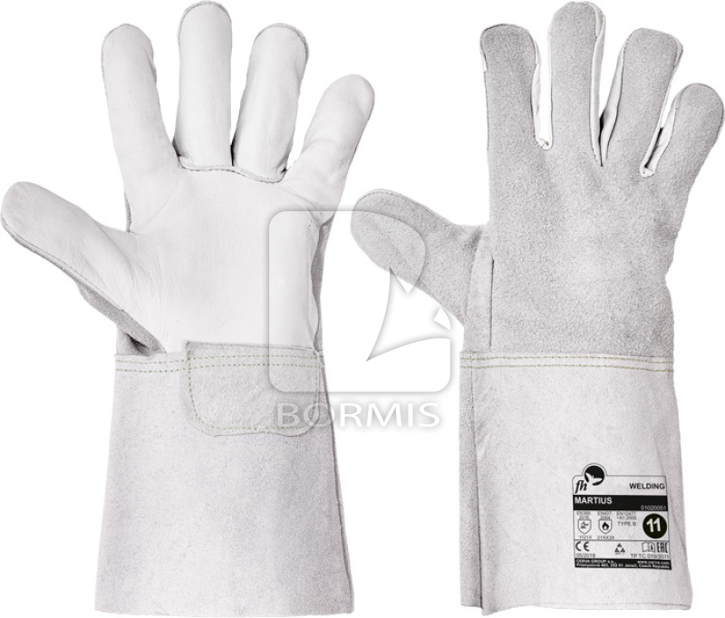 Rukavice z hovädzej štiepenky, byvolia lícovka na dlani pre zvýšenie komfortu a lepší úchop, šité kevlarovou niťou. Norma: EN 388:2016 (1121X), EN 420:2003+A1:2009, EN 12477:2001+А1:2005 (21XX3XType_A)