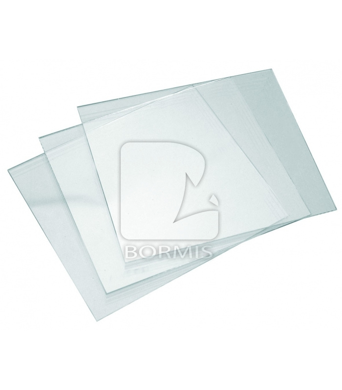 Číre, nevykazuje optické deformácie pri priehľade, odoláva bežne používaným kvapalinám, rozmer: 110x90 mm, hrúbka: 2 mm. Vhodné pre ochranu zváračského filtra pred usadzovaním kvapiek kovu pri zváraní.